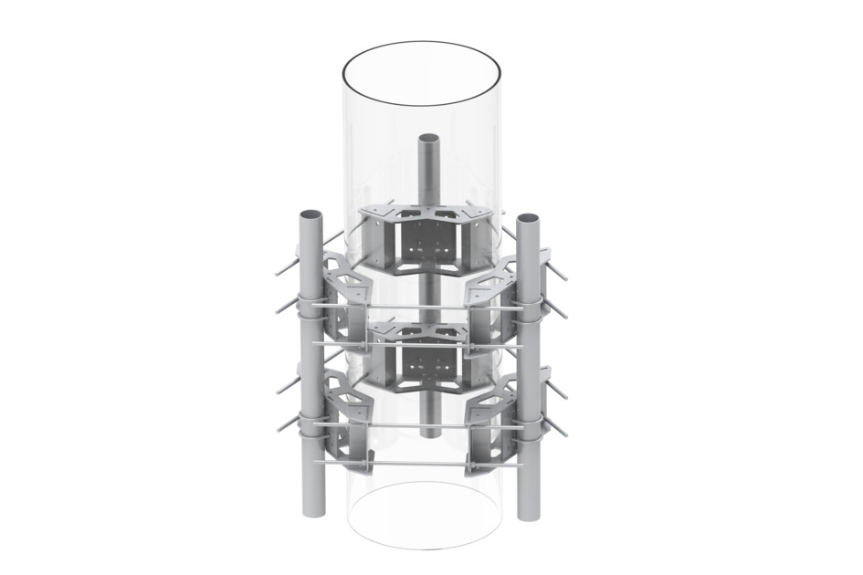 Dual Universal Ring Mount (MC-RM1550-3D), 15 in to 50 in OD with (3) 4-1/2"OD x 63" Pipes