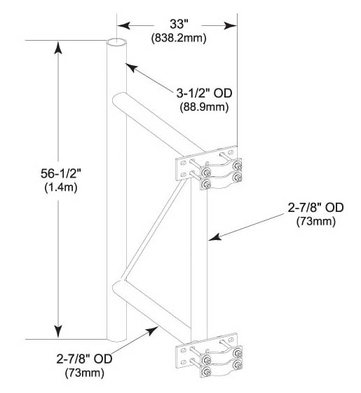 Pipe Frame Stand-Off Bracket, 36 in, for 2 in to 5 in OD legs