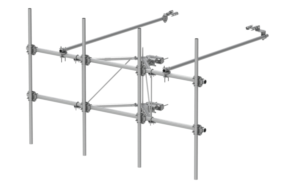 | Included | Frame | Pipe mounts | Plain end pipes (4) | Stiff arms (2) | Tower attachment |