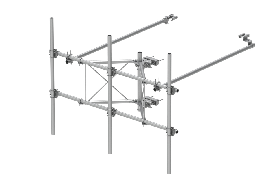 | Included | Frame | Pipe mounts | Plain end pipes (3) | Stiff arms (2) | Tower attachment |